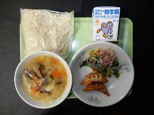 チャンポン麺、彩の国ねぎ味噌餃子、ツナサラダ、牛乳です。