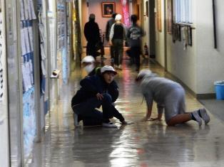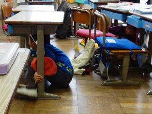 今日は業間の休み時間に地震発生の想定で避難訓練を実施