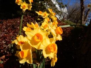 職員室前の花壇に白と黄色のスイセンが満開になっています。