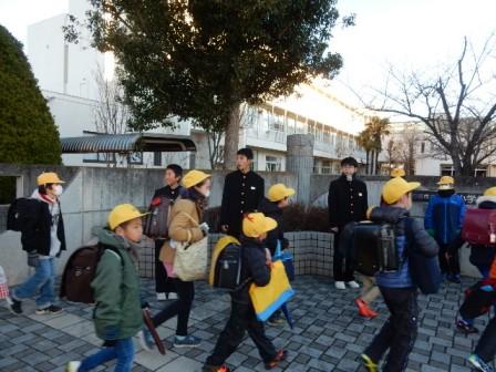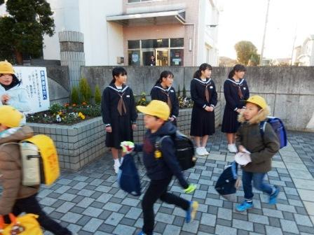 今日は豊春中学校のお兄さんお姉さんが校門であいさつ運動をしています。
