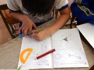 3年生は図工で、木材を切っています。今日は太めの木の枝です。