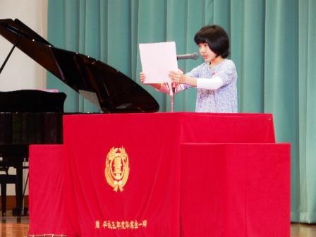 1年生ながら、素晴らしい挨拶を披露してくれました。