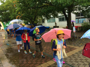 2学期最初の一斉下校が行われました。あいにくの雨でしたが、