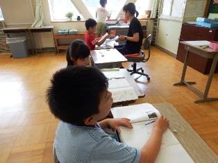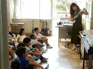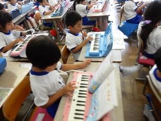 1年生は音楽の授業で、鍵盤ハーモニカの練習です。
