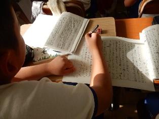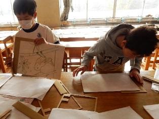 5年生は図工で、版画です。鳥をテーマに作品を制作するそうです。
