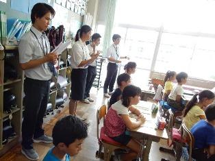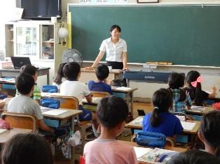 3年3組は国語の授業です。教育実習生が参観しています。