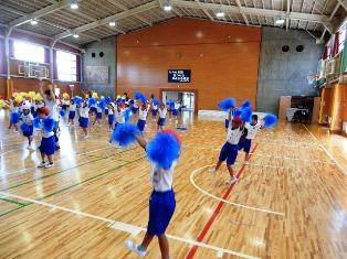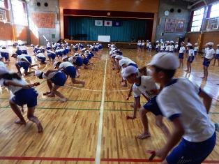 5年生は体育の授業で、体育館で運動会の練習です。