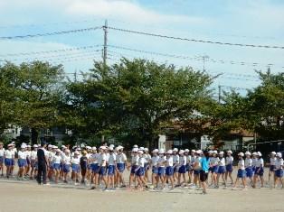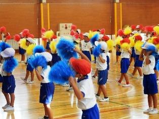1年生は体育の授業で、運動会のダンスの練習です。