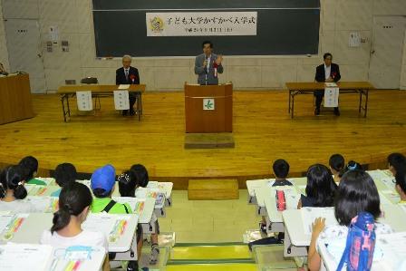 子ども大学かすかべの入学式の様子です。本校からは、4年生が3名、6年生が1名