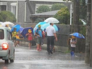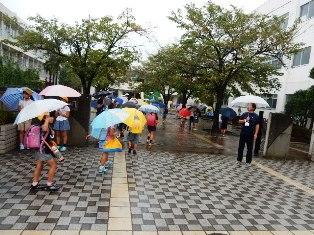 タイミングが少しずれて、激しい雨の中の登校でしたが、