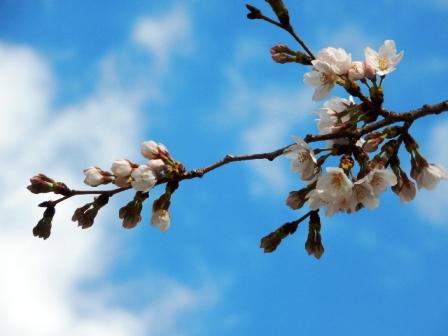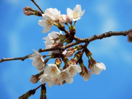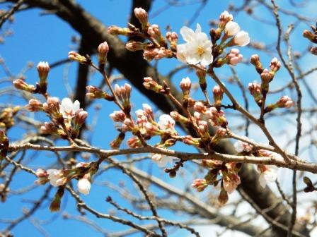卒業を祝うかのように、中庭の桜が咲き始めました。
