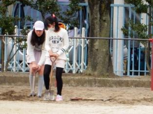 運動委員会の5年生が、砂場の砂を掘り起こしてフカフカに