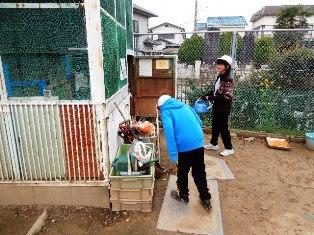 こちらも飼育委員会の5年生がうさぎの世話をしています。