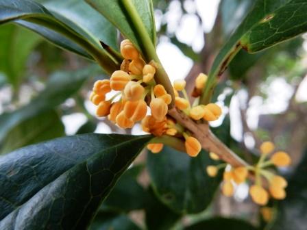 金木犀の花がオレンジ色に色づいてきました。ほのかに香ります。