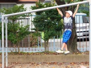 朝マラソンの前に遊具で遊んでいる子どもたちです。