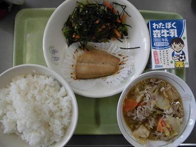 本日の給食は、ごはん、牛乳、さわらの幽庵焼き、磯香焼き、すき焼き風煮でした。とてもおいしくいただきました。