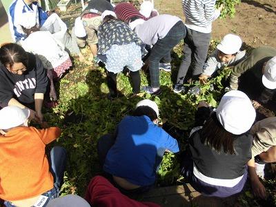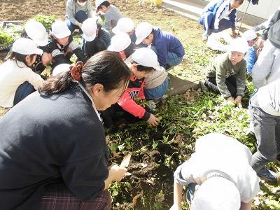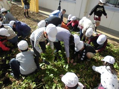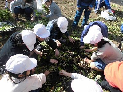 2年生は、学校ファームの最後の野菜であるほうれん草の収穫を行いました。ほうれん草の収穫を行う児童と、草むしりをする児童に分かれて一生懸命取り組めました。
