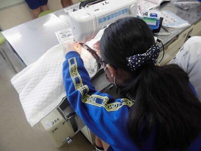 【6年生 家庭科】ミシンの使い方にも慣れ、トートバックも完成間近です。