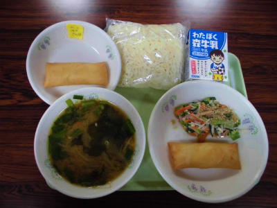 中華麺、みそラーメンの汁、牛乳、ささみの包み揚げ、ナムル