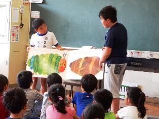 今朝の活動は読書タイムです。1年生と2年生は図書委員会の