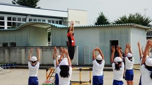 軽い準備運動のあと、ラジオ体操第一を行いました。