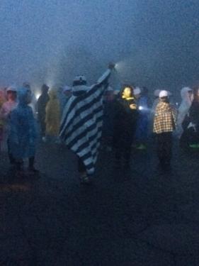 火の神から全力・絆・希望の火をそれぞれいただいた豊春小5年生の子どもたち。マイムマイム、ジンギスカン、猛獣狩りゲームを行い、雨の中でも40分程度、キャンプファイヤーを楽しみました。