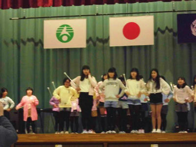 バトンクラブと金管バンドクラブがパフォーマンスを披露しました。部長中心に頑張っています。