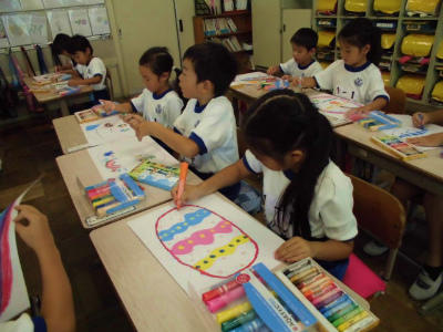 1年生 図画工作 ふしぎな卵は、私だけの卵です。きれいに描けています。