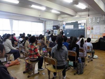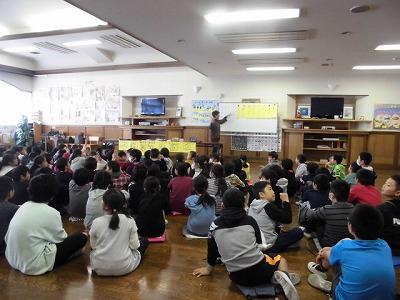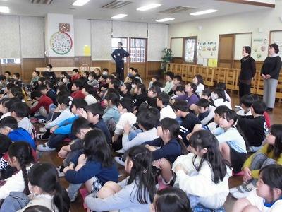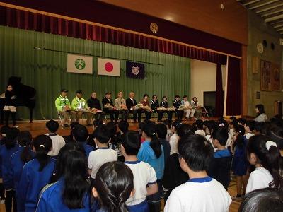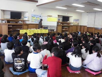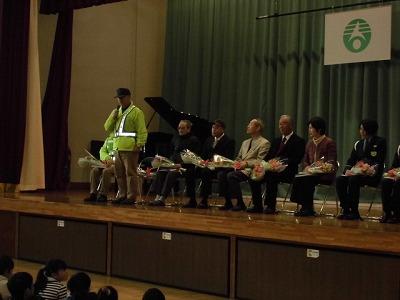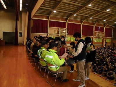 一年間お世話になった地域の方々に「ありがとう」の気持ちを込めて全校児童で集会を開きました。感謝の気持ちを込めたお手紙と、花束を渡しました。ご来校いただいた地域の方々は「子どもたちから力をもらっているから続けている」「子どもたちの安全、安心のために続けていきたい」「元気な笑顔をみたい」などのお言葉をいただきました。全校児童は感謝の気持ちを「YUME日和」という歌に込め、地域の方々に歌声をプレゼントしました。