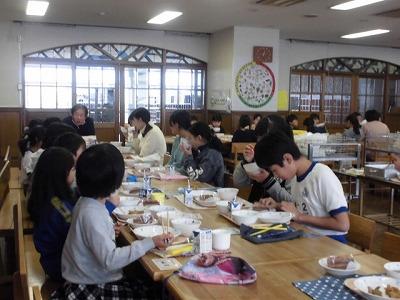 今日は、2月生まれの豊春っ子のお誕生日給食でした。異学年で楽しく給食を食べ、ケーキもたべました。