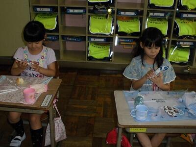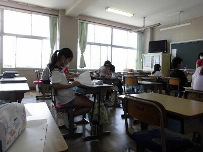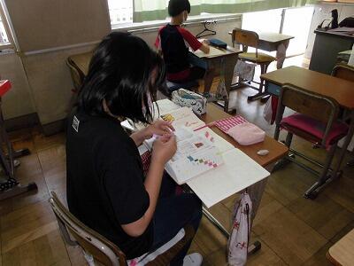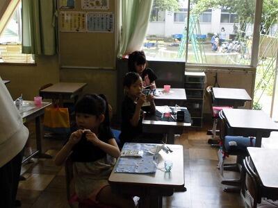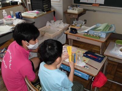 3年生は、いろいろな授業を行っており、モンシロチョウの卵のスケッチや、算数の問題などを行いました。