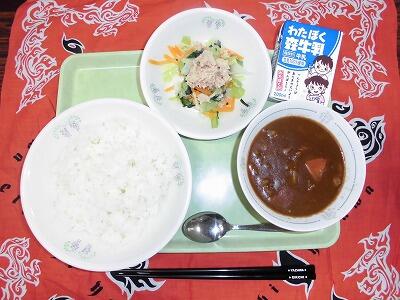 本日の給食は、ハヤシライス、麦ご飯、牛乳、ツナサラダでした。みんなが大好きなハヤシライスはとってもおいしくまろやかでした。