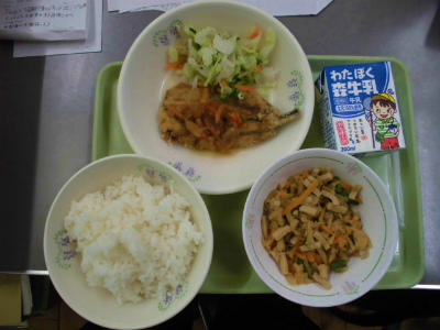ごはん 牛乳 いわしの南蛮漬け きゃべつの和えもの 切り干し大根の煮物