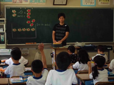 1年生算数。半具体物と数を結びつけ、式に表す学習です。