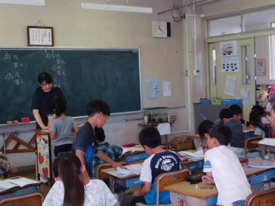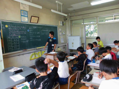 3年生算数。沢山問題をといて、力をつける時間です。大学から教育研修生の先生も来てくださり、子どもたちの学習を支援してくださいます。