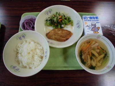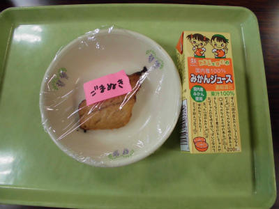 アレルギー対応はごまぬきの鯖、交流給食の5-1、1-1の児童はみかんジュースです。