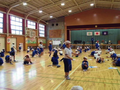 5年生 体育の準備活動 自分のできそうな技を自分で選択している場面です。