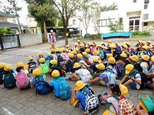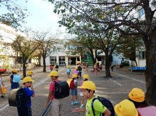 6年生のお兄さんお姉さんの誘導で移動しています。