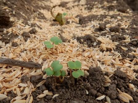 今週月曜日(10月3日)に2年生がまいた種が元気に芽を出しました。