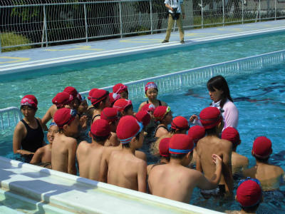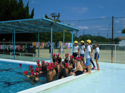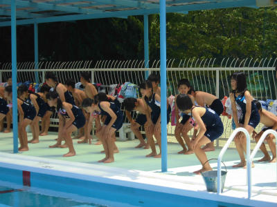 6年生は卒業アルバムの候補となる写真の撮影も兼ねて、気持ちよくプールに入っているところです。