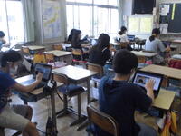 国語や算数の学習では、様々な感染対策の工夫をしながら学習を進めています。社会や理科、図工等の学習では、タブレットを活用した調べ学習を行っています。リコーダーの学習では一人ずつ演奏するようにしています。子どもたちは落ち着いて、とても意欲的に学習に取り組んでいます。