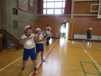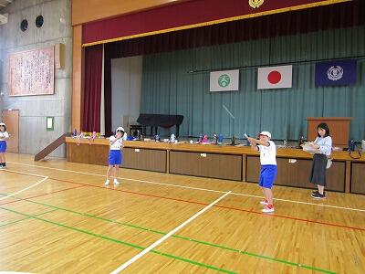 理科で空気と水の学習をしています。空気を圧縮したときの力について空気でっぽうを使うことで体感的に学習を行います。