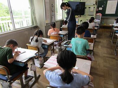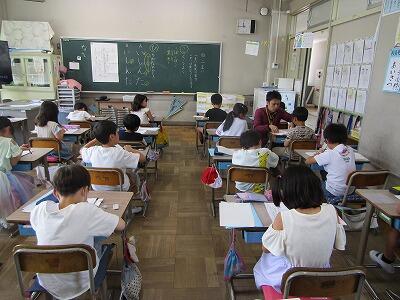6年生の教室を訪れると教育実習生が算数の授業を行っていました。