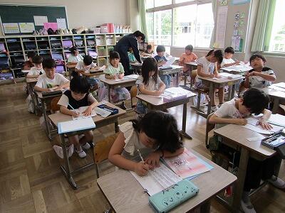 一文字一文字、お手本を見ながら字形の特徴をとらえながら、ていねいに書いていました。