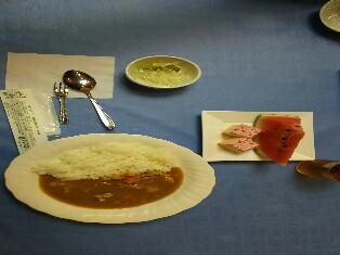飯盒は雨天のため中止となりました。食堂で夕食となりました。
