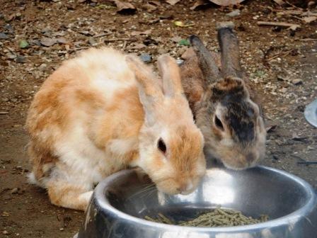 飼育委員会の皆さんが用意したエサを美味しそうに食べています。