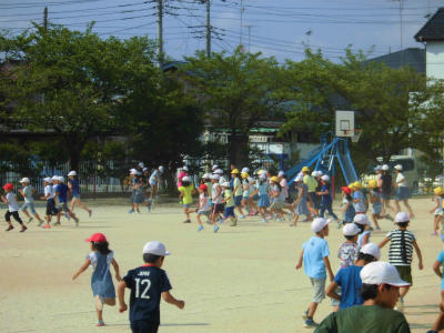 暑い朝でも元気に走る豊春の子どもたち。ぐっと成長する夏休みを送ってほしいと願っています。