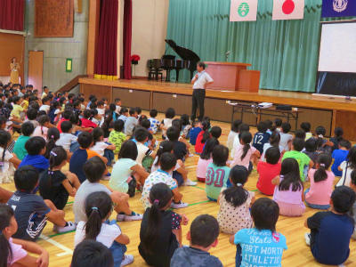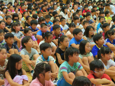 夏休み前、交通安全や生活全般にわたって安全に過ごせるよう、全校児童に向けて指導しました。