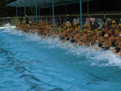 天候が心配されましたが、午前中雨も降らずに、予定通り水泳学習を実施することができました。
