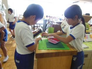 5年生の教室、「台湾からの転入生」を資料に道徳の授業が行われています。
